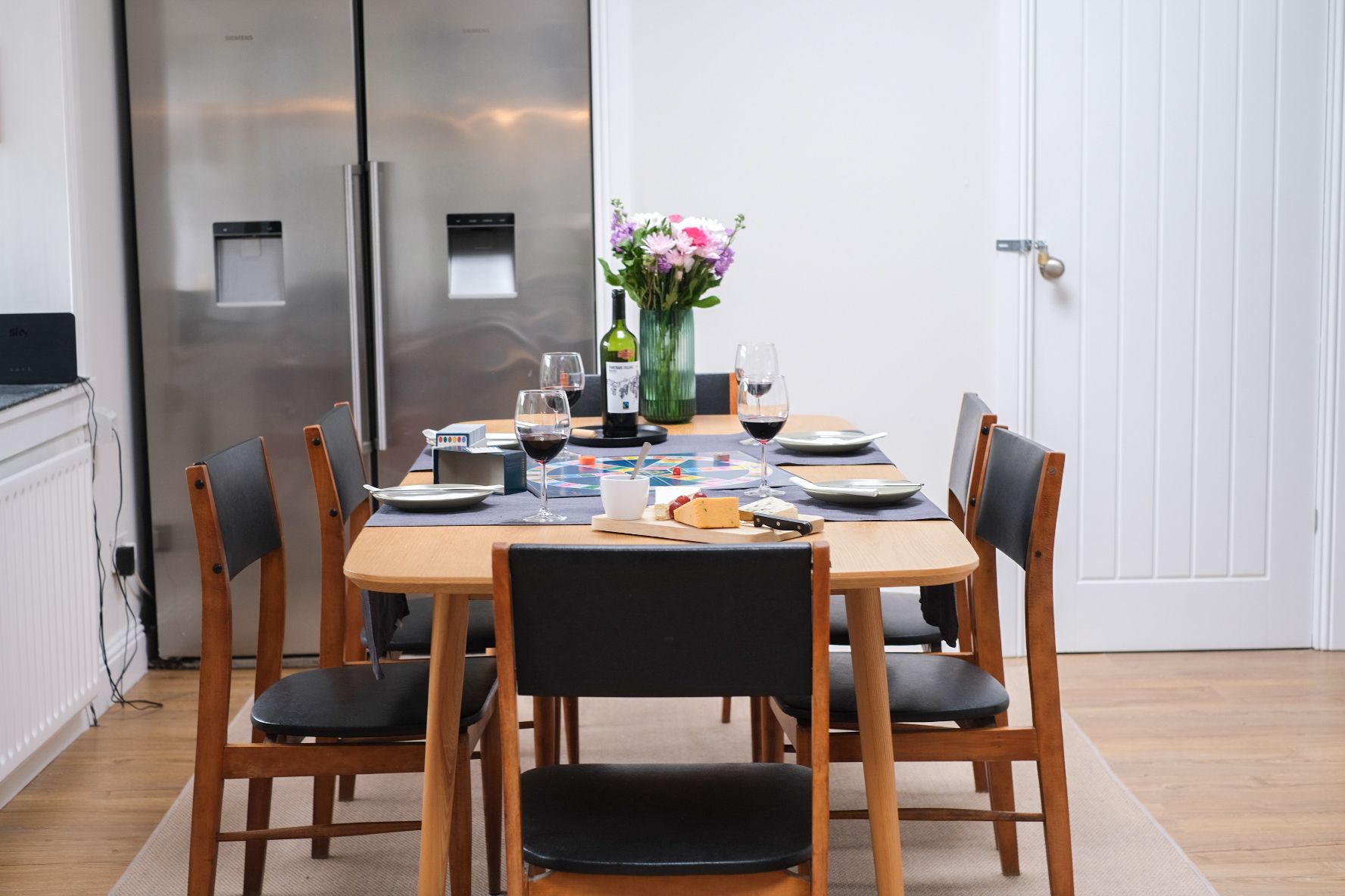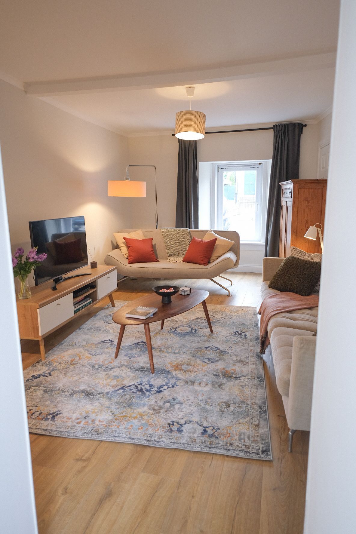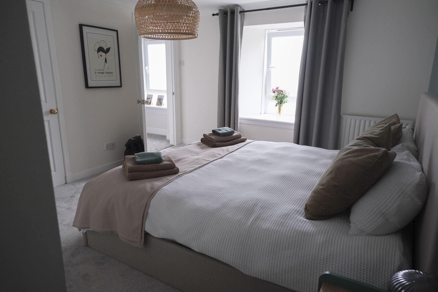 The recently renovated house has a spacious, fully equipped kitchen, with all the mod cons and basics such as tea and coffee and condiments for cooking. The kitchen features a dining table seating 6 (which can be extended to sit 10). The cosy living room is ideal to relax after a day out in the Scottish countryside. A large screen smart-TV, the 2 sofa's, board games and books and an abundance of blankets and pillows are sure to guarantee a good coorie in (Scottish cosiness).