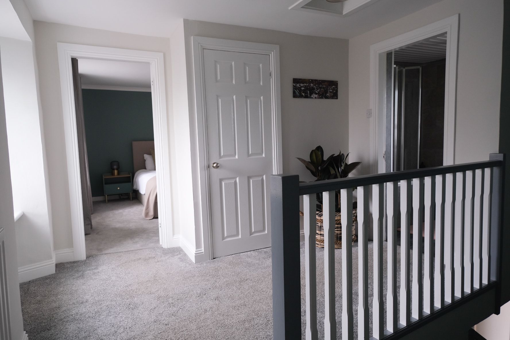 : This bedroom has a super king size bed, ample space for clothes storage, a fitted carpet and is adjacent to the family bathroom.