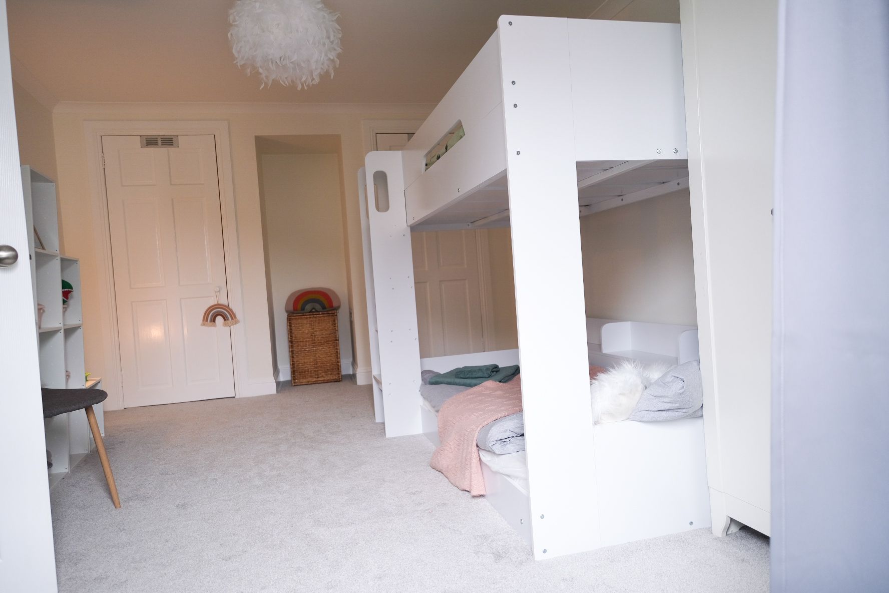 : This cosy room has a double bunk bed (which can also sleep teenage kids/adults), ample space for clothes storage, a fitted carpet and easy access to the family bathroom. There is also a selection of toys to keep your small humans entertained. The bottom bunk sits close to the floor for younger children.